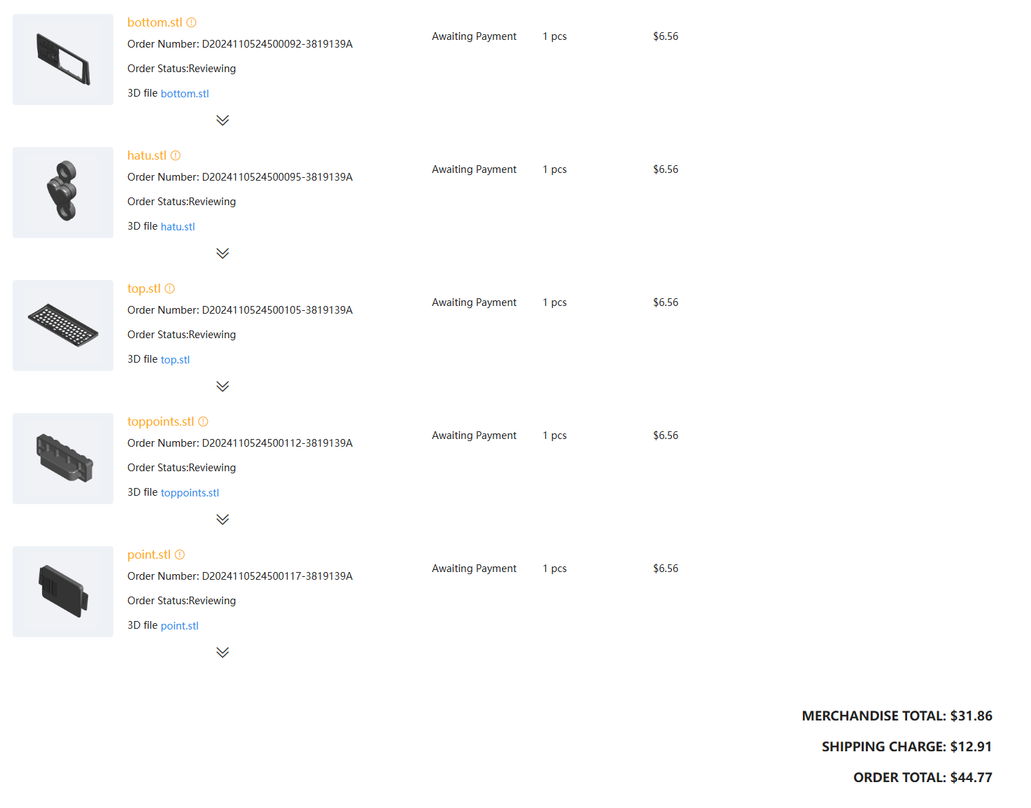 새로 추가한 포인트 파츠 2개는 크기가 작아서 어떤 레진을 사용하든 가격 차이가 별로 나지 않아서, 이번에 새로 생겼다는 JLC Black Resin으로 주문했다.