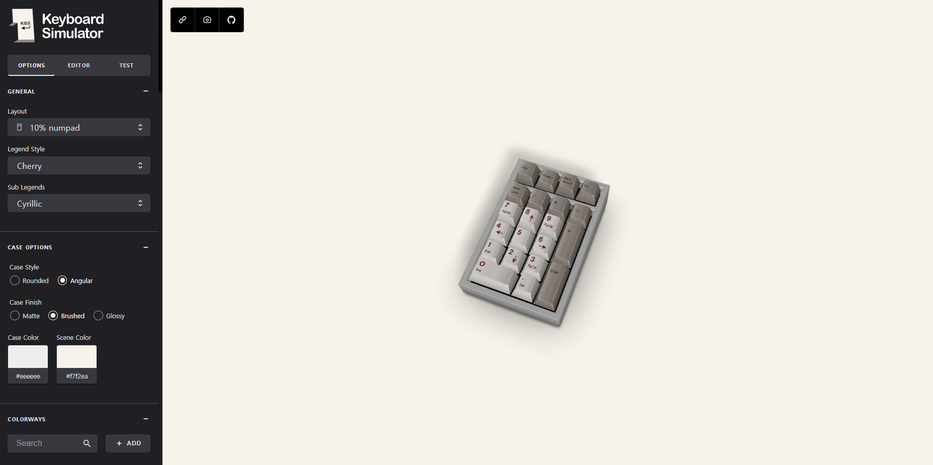 그 아래 Colorways 탭에는 여러 키캡의 컬러웨이가 준비되어있어, 클릭만으로 원하는 키캡 색상으로 변경할 수 있습니다.