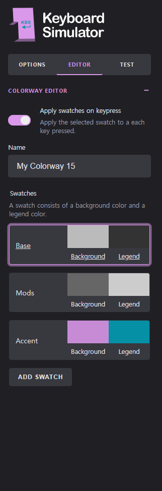 2번째 Editor탭으로 가면 본격적으로 키캡을 원하는 색상으로 바꿔줄 수 있습니다.