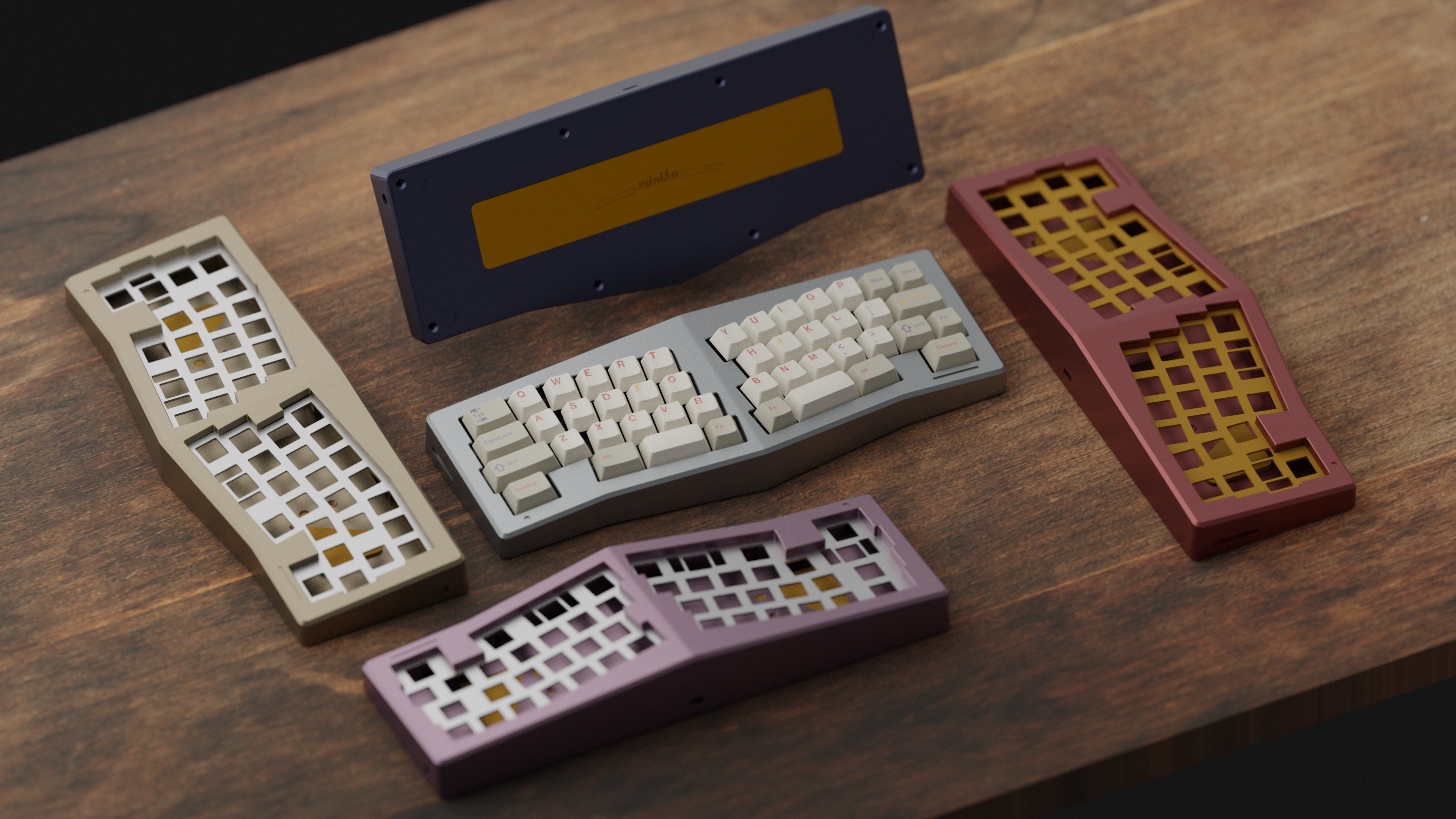 좌우 배열의 대칭을 위해 좌측모디열은 일반적인 길이의 키들을 놓았고, 우측모디열은 백스페이스가 1U/ 엔터가 1.75 / 쉬프트는 2.25(or 렌더링처럼 1.25+1) 로 놓았습니다.