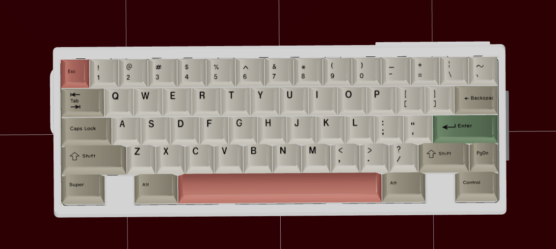 저는 얼마 전 만든 WKL 레이아웃 키보드를 렌더링 해보고 싶어서 HHKB를 불러와서 약간 수정해줬습니다.