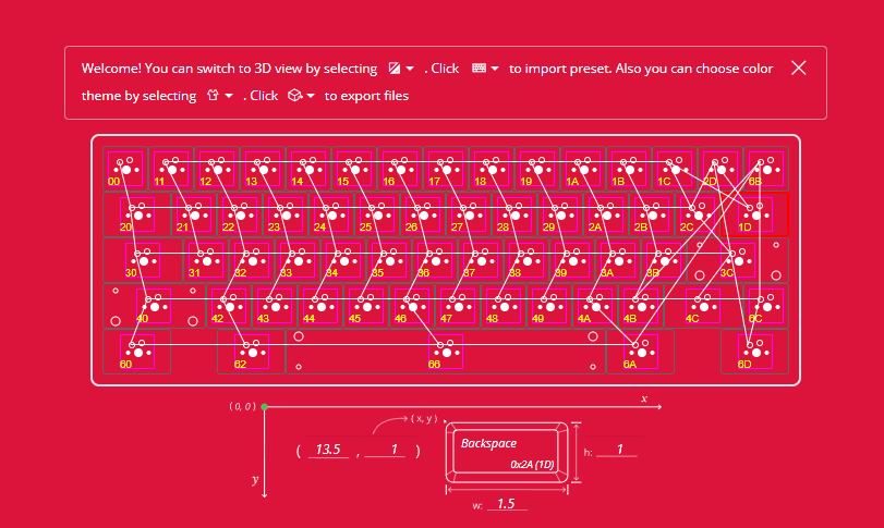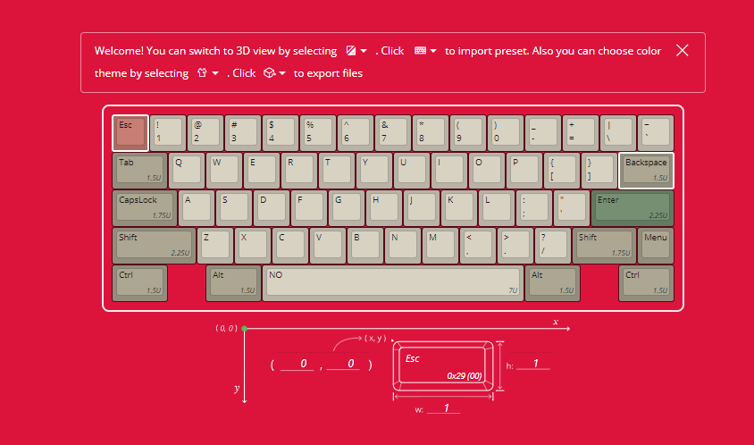 수정은 디폴트 뷰에서 할 수 있고, Keyboard Layout Editor 랑 사용법이 거의 똑같아서 처음 이용하는 사람도 쉽게 조작할 수 있습니다.