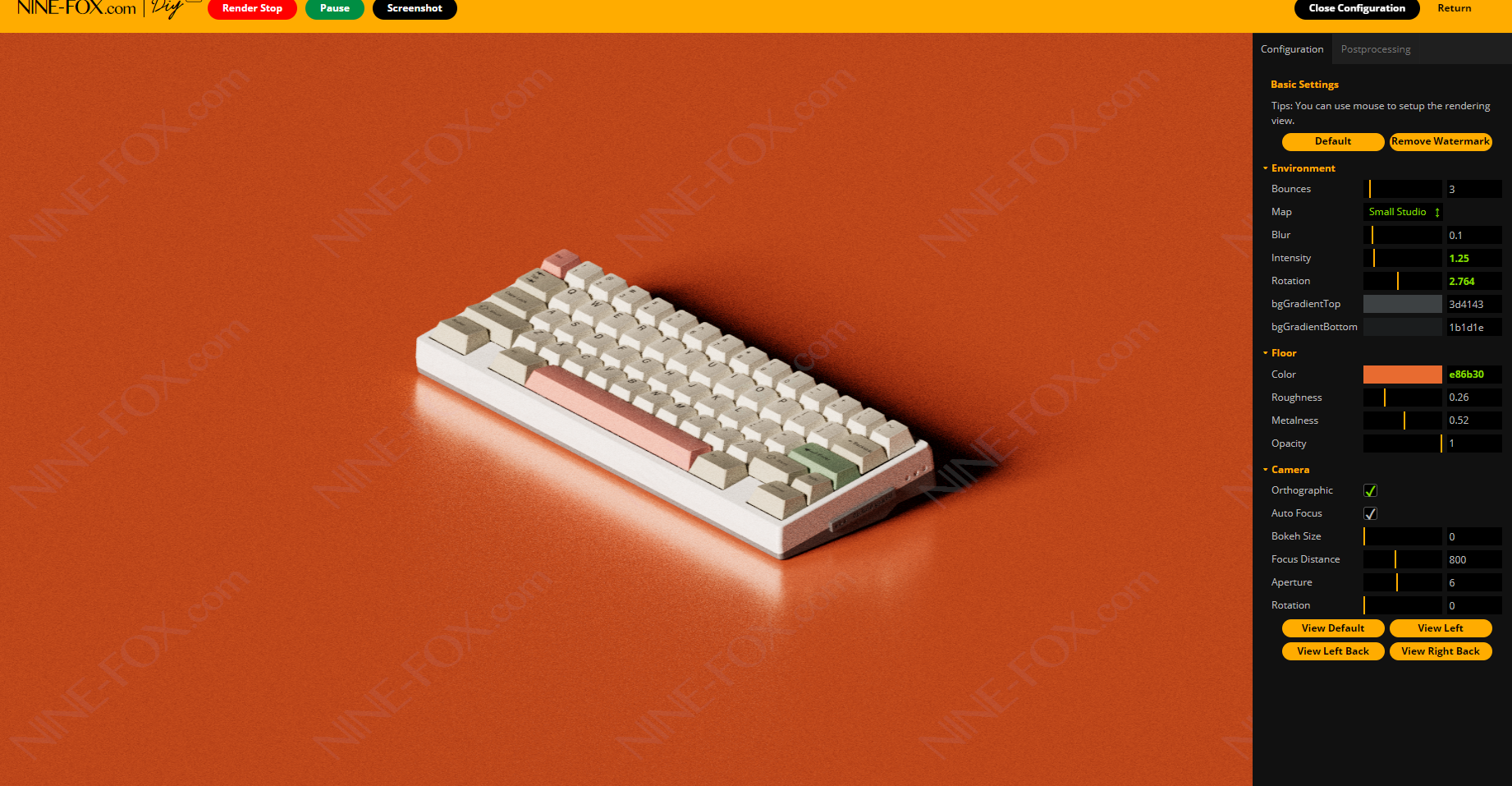 이 렌더링 사이트가 엄청난 게 하나 있는데, 바로 디폴트 뷰 페이지에서 수정한 레이아웃을 토대로 하우징이나 키캡 같은 오브젝트의 모델링을 자동으로 만들어 준다는 점입니다.