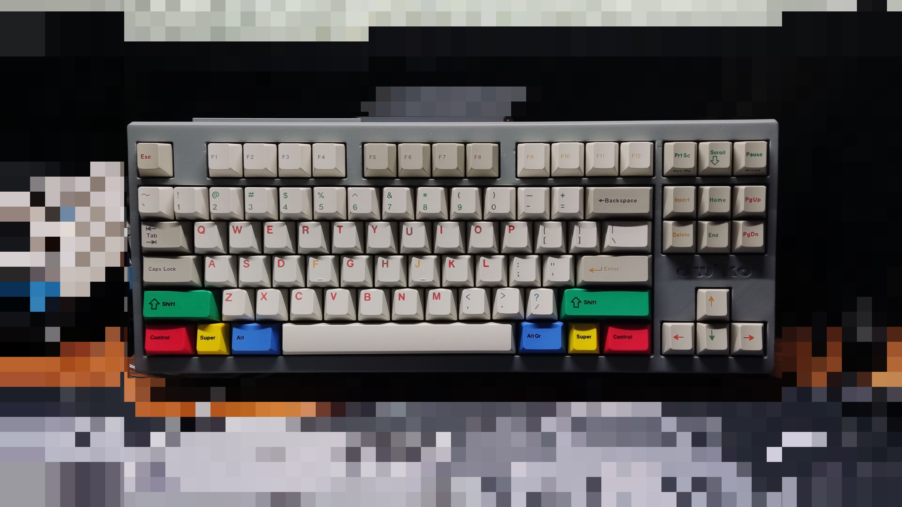 키캡은 xmi 한다베이지 (흔히 말하는 새우키캡) + xmi RGBY킷을 사용했습니다.