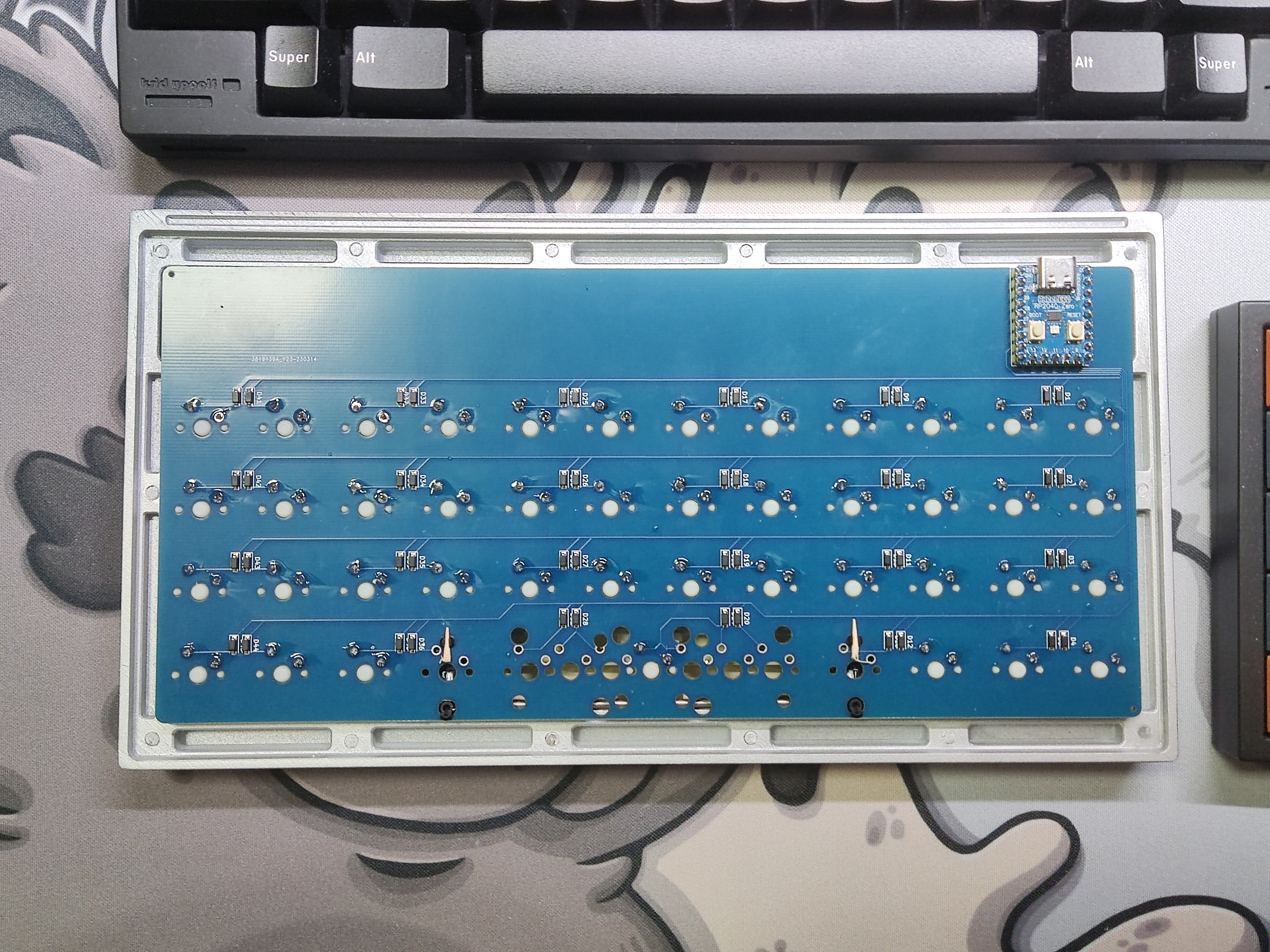 jlcpcb에 소량 주문해서 만든 자작기판의 뒷면에 핀헤더 버전 rp2040_zero를 꽂아줍니다.