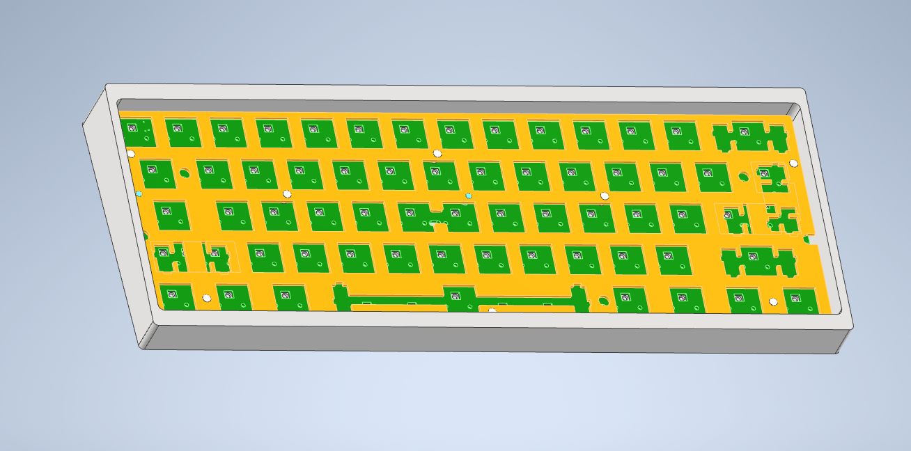 이번 키보드는 60he의 기존 기보강을 그대로 사용할 것이기 때문에, 결합방식도 기존과 동일한 트레이 마운트 방식으로 설계를 진행했습니다.