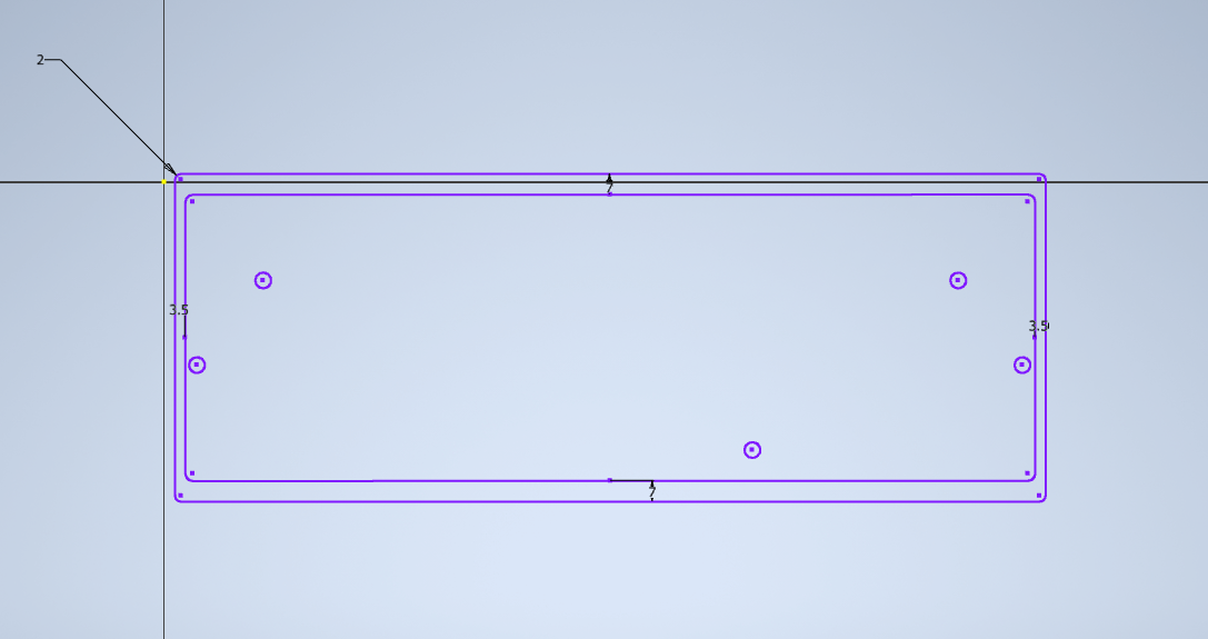 잠시 기보강을 숨김처리 해주고, 상판 윗면에 새 스케치를 열어 형상투영 기능을 이용해 볼트위치와 하우징 안쪽 테두리 위치를 잡아줍니다.