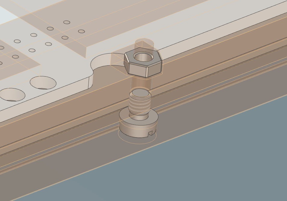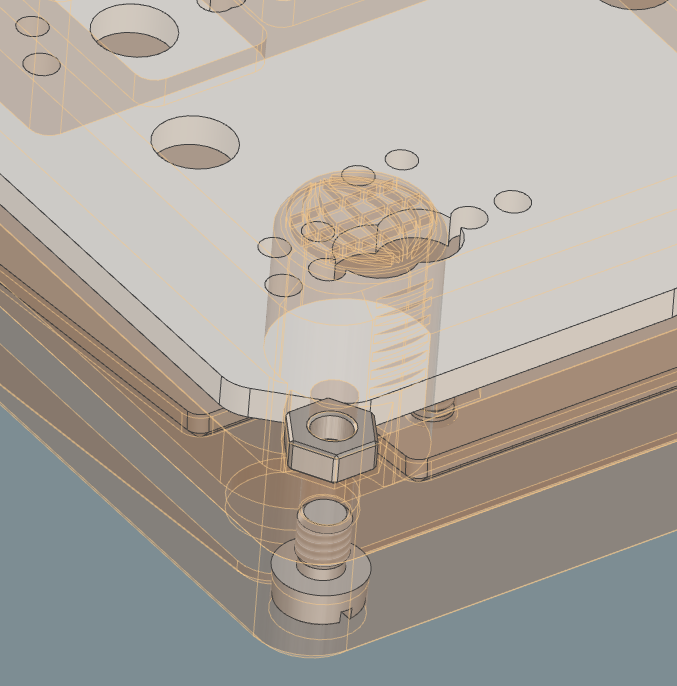 그래서 상하판 고정을 위해 너트를 매립해서 스레드홀 기능을 대신할 수 있도록 설계하였습니다.