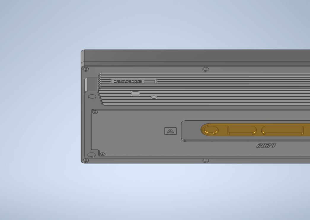 그래서 예전에 대충 만들었던 카세트테이프 느낌 모델을 다시 다듬어서 하판 쪽을 만들어 봤습니다. 이번에 만든 플로피랑 비슷한 느낌으로, 매트릭스 팔콘맛..?