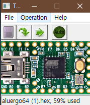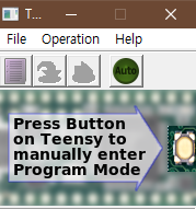해당 키보드를 컴퓨터에 연결해주고 아까 다운로드하신 teensy.exe 파일을 실행해줍니다.